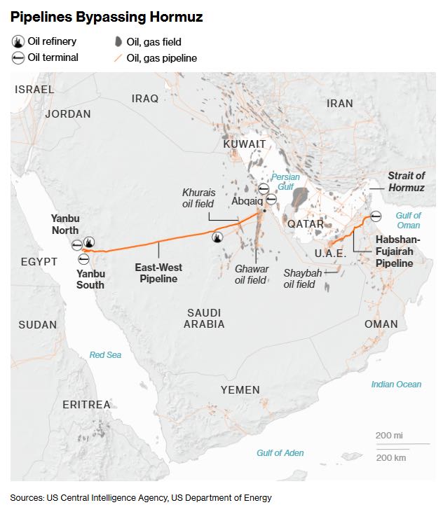 خطوط الأنابيب التي تتجاوز مضيق هرمز