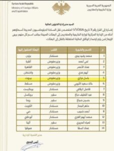 عينت وزارة الخارجية السوريه السيد باسل نيازي وزير مفوض للشؤون(سفير فوق العادة) الدبلوماسية في السفارة السورية في لبنان ينحدر نيازي من مدينة حماه وعانى الكثير من ظلم نظام المجرم بشار الاسد عندما كان بالسلك الدبلوماسي في الخارجية السورية