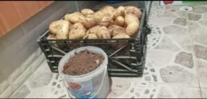 انظر كمية التراب في هذا الدلو المنزوعة من البطاطا في الصندوق