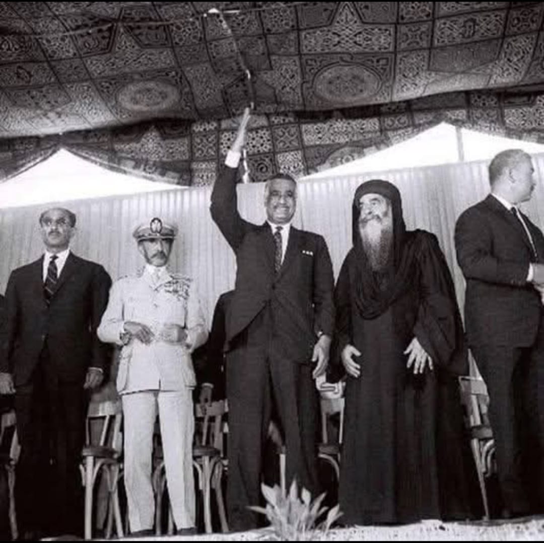 حضر الرئيس جمال عبد الناصر حفل افتتاح الكاتدرائية، ودعا له إمبراطور الحبشة هيلاسيلاسى، حيث كان الرئيس يؤمن بأن امتداد الكنيسة المصرية فى أفريقيا وإشرافها على الكنيسة الإثيوبية يعزز من البعد الأفريقى لمصر الذى تحدث عنه عبد الناصر فى كتابه فلسفة الثورة.