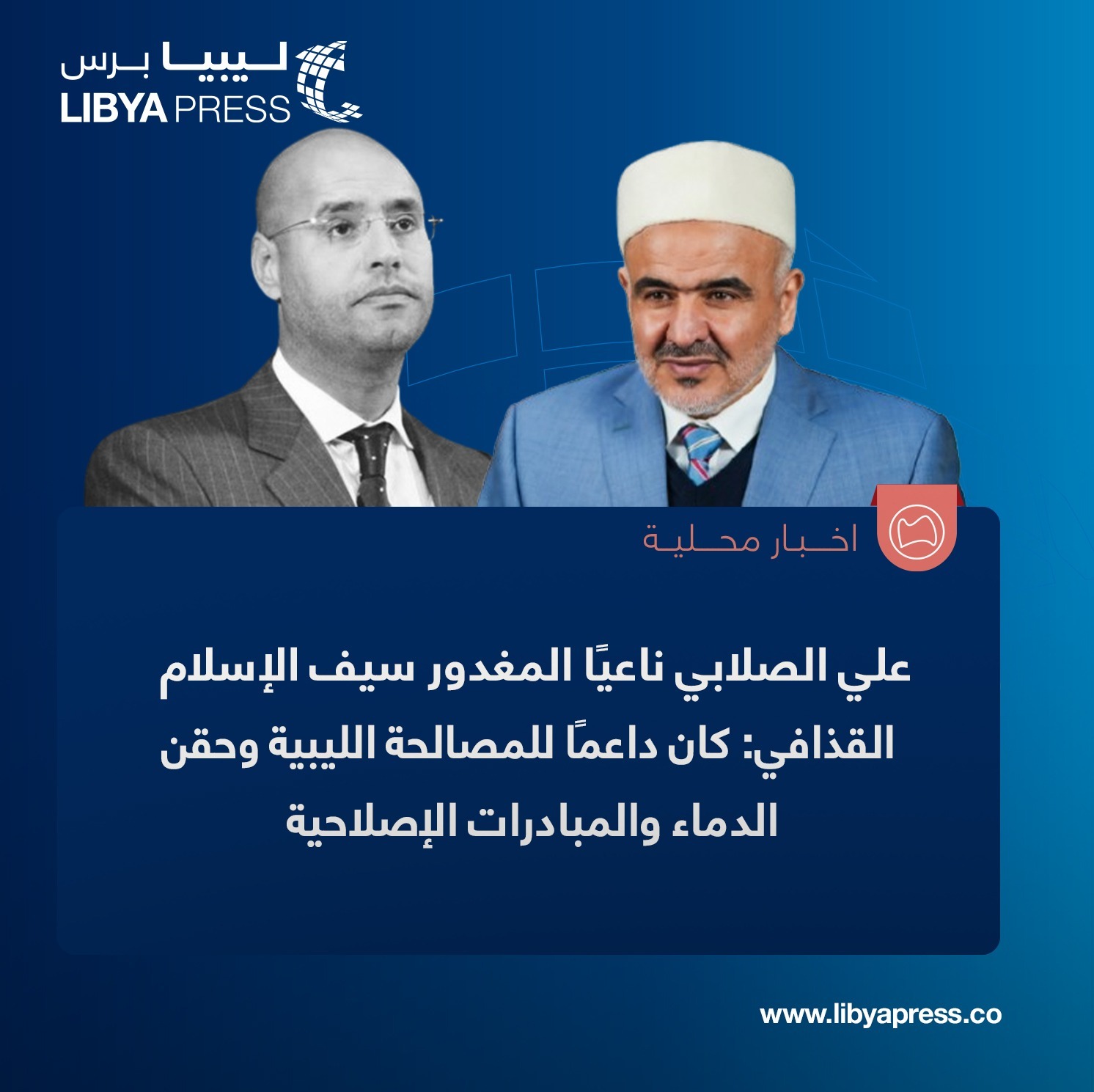 الإخواني علي الصلابي، مستشار المنفي لشؤون المصالحة: ننعى وفاة الدكتور سيف الإسلام معمر القذافي، ونتقدم بخالص التعازي وصادق المواساة إلى أسرته وذويه ومحبيه.