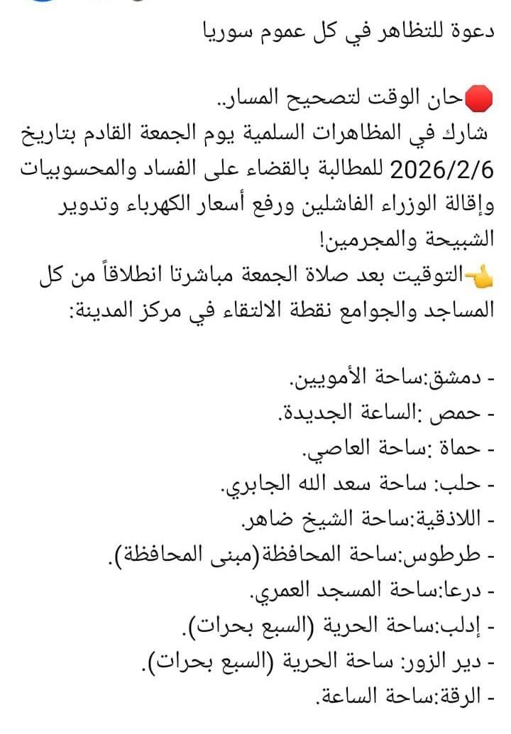إلى من يتولّون اليوم مسؤولية إدارة الدولة باسم الشعب السوري، 🎈نحن أبناء هذا الشعب المنهك بالجراح، الذي قدّم مئات آلاف الضـحايا، وتحمّل القتـل والتعذيـب والتهجـير وفقدان الأحبّة،...